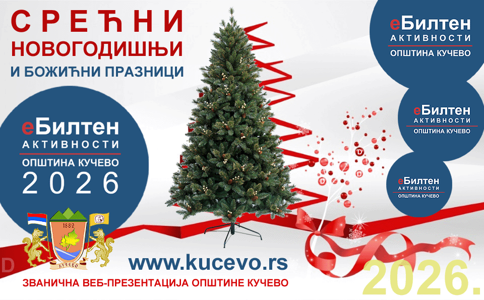 Срећна нова 2026. година и предстојећи божићни и новогодишњи празници. Благостање, мир, здравље, успех и доброта да вас прате целог живота, жели Вам понаособ уредник и приређивач „еБилтена активностиˮ Општине Кучево. Свако добро поштовани суграђани и посетиоци општинске веб-презентације. |